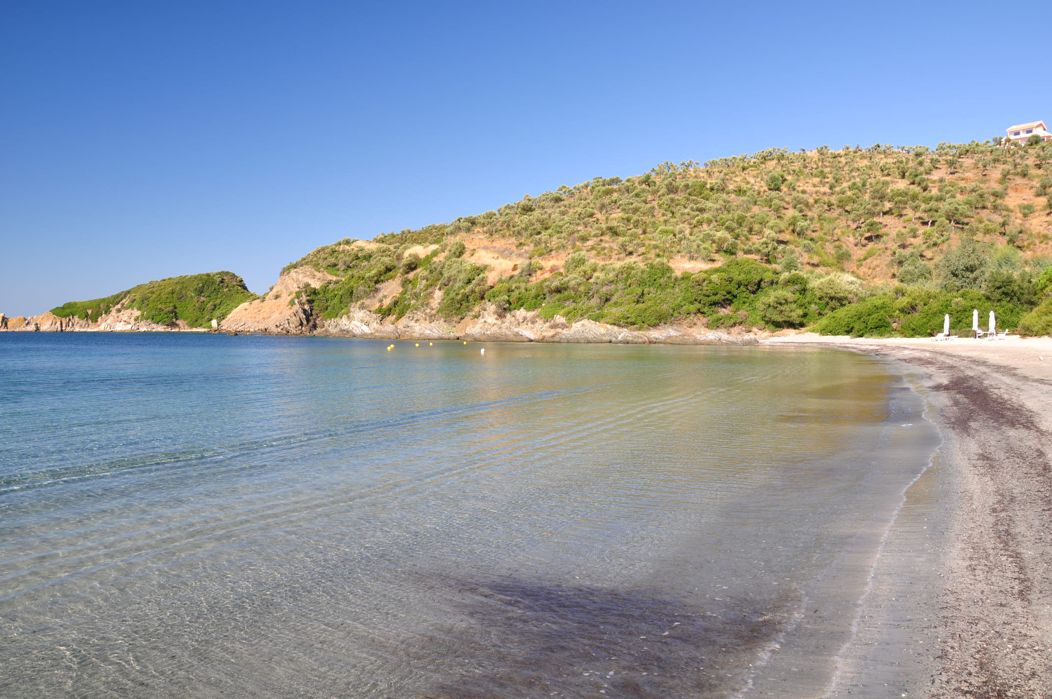 Калопигадо е малък, тих плаж, веднага след Аликес, в посока към плаж Карагаци. В морето пясъкът е черен, влизането във водата е плавно. Не се предлагат услуги на него като чадъри и шезлонги или заведения за хранене.